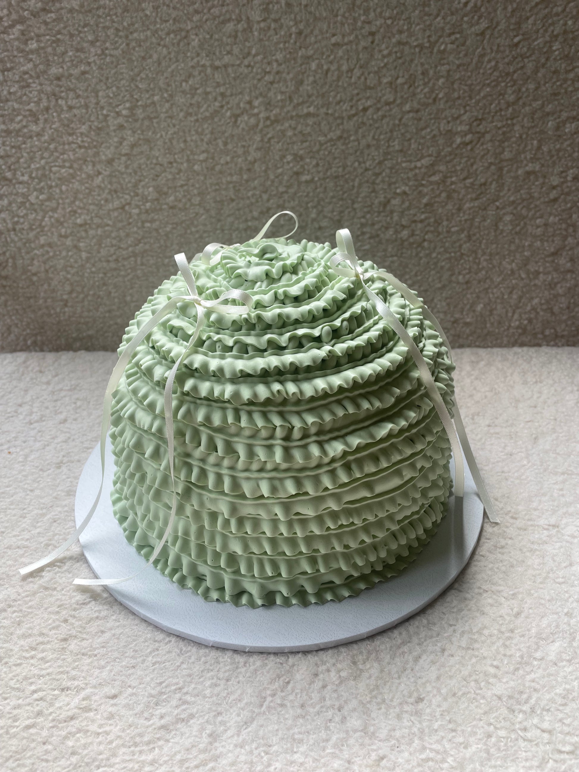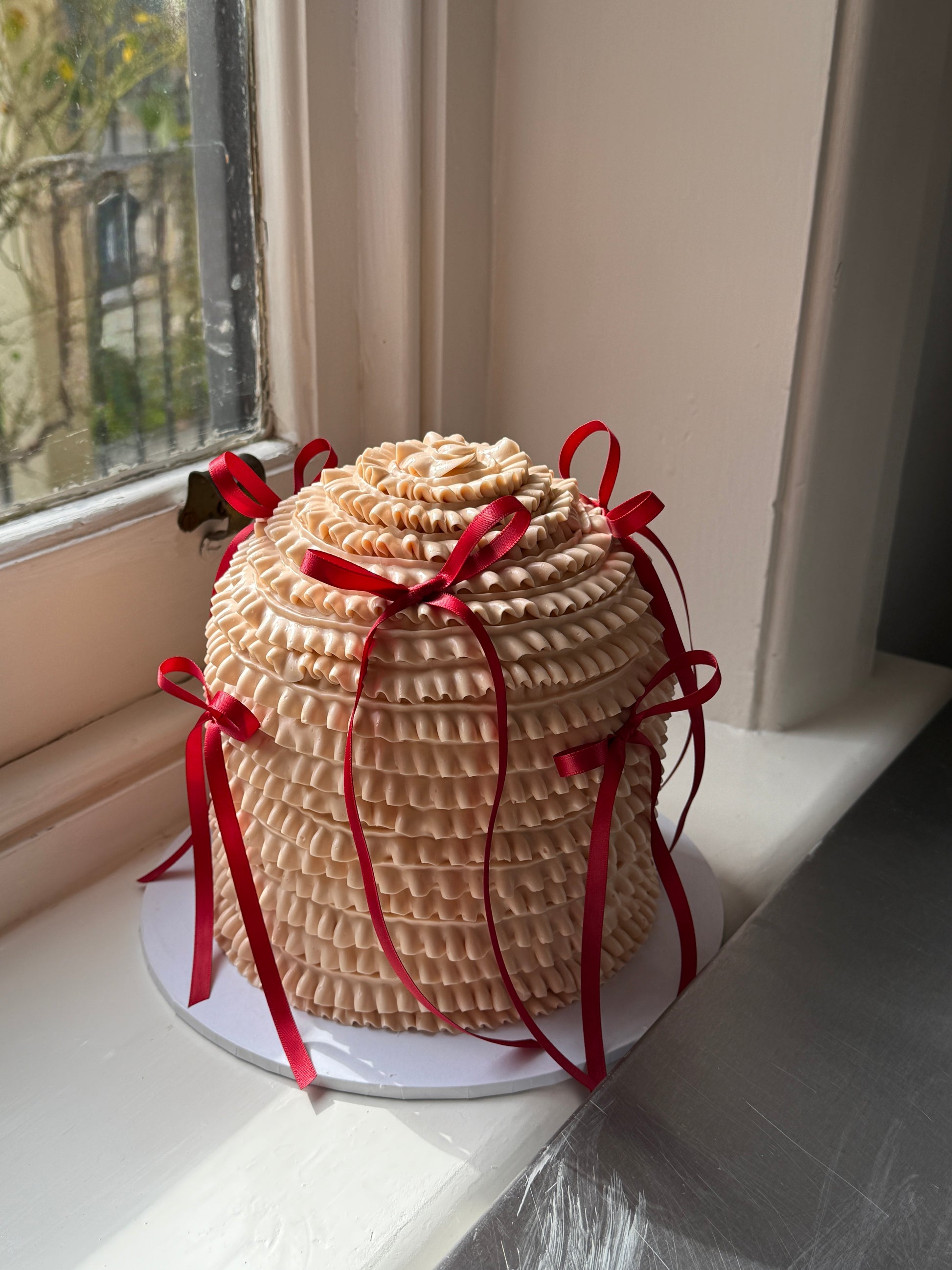 Ruffles for days and days! She's a gorgeous frilly ruffle piped dome cake with bows included!